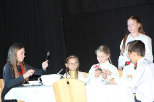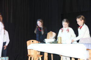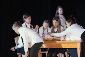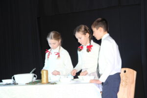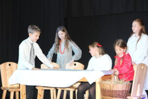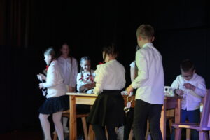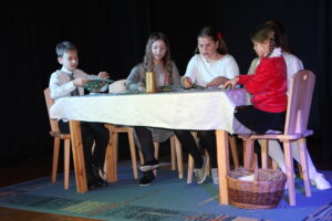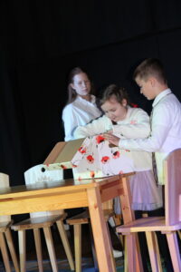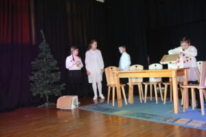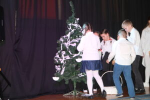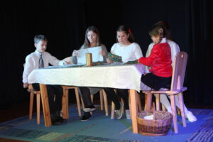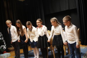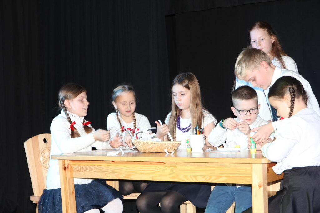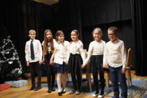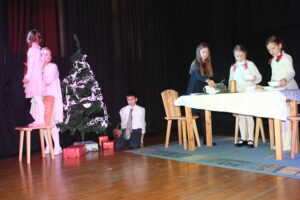 15 grudnia 2024 r. odbyła się premiera naszego autorskiego spektaklu „Wymarzone święta”. Pomysły na poszczególne sceny: moje aktorki i moi aktorzy kółka teatralnego „Turlicki” . Zajęłam się napisaniem do nich scenariusza oraz wyreżyserowaniem go. Czas przygotowań do niego był bardzo intensywny, bo rozpoczęliśmy bardzo późno (listopad).