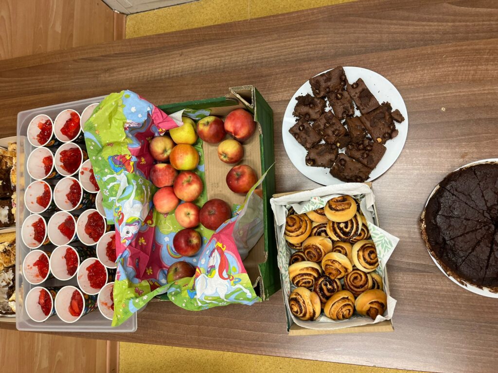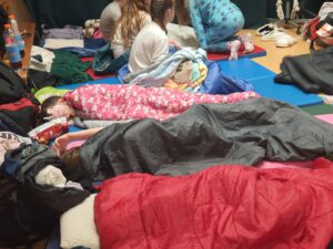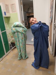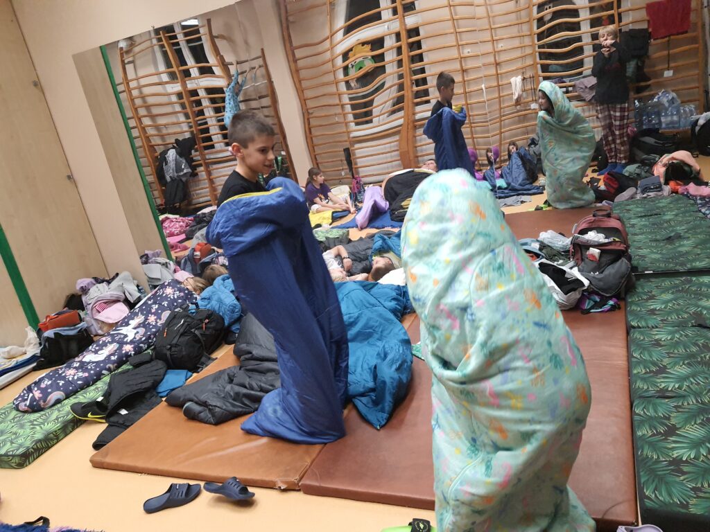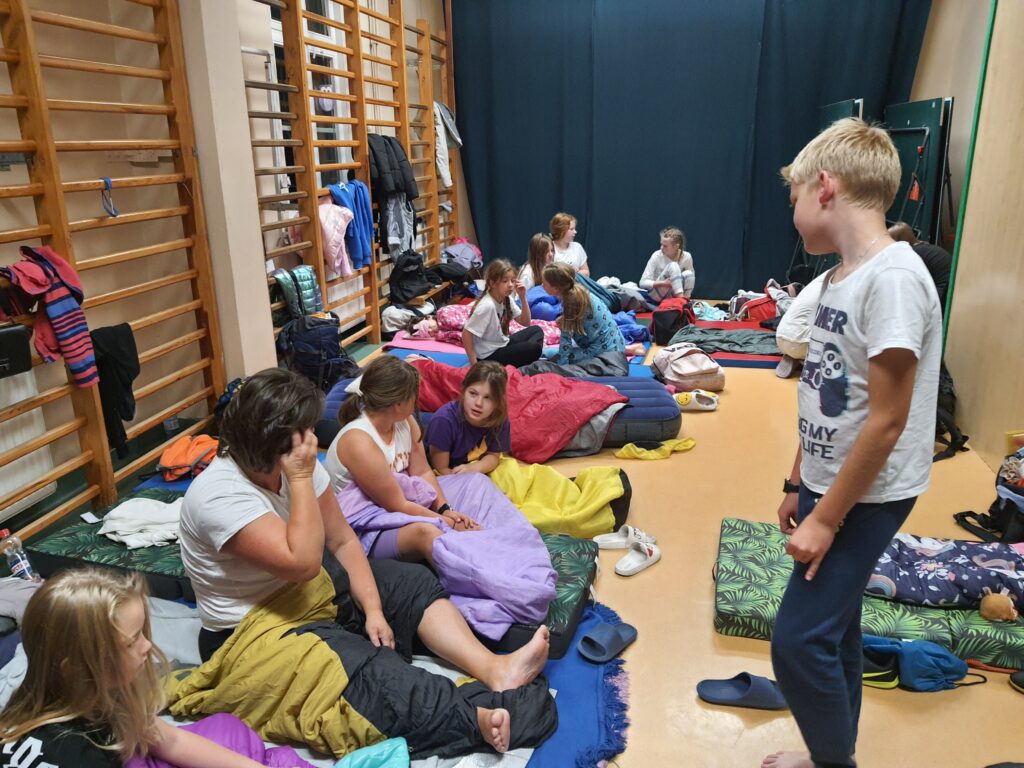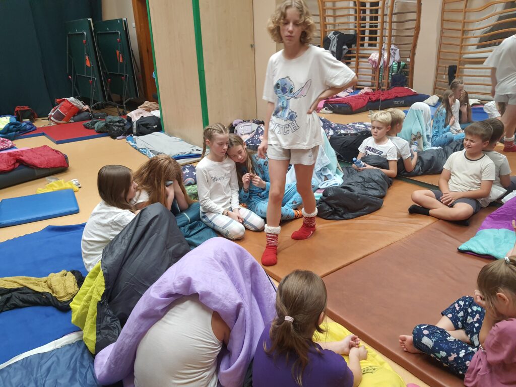 -po dotarciu na miejsce, sala gimnastyczna była już przygotowana do spania, czekał na nas pyszny obiad i kilka rodzajów ciasta nie do przejedzenia!