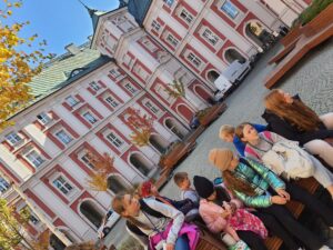 -Stare Miasto- wielką wartością zwiedzania różnych miejsc jest słuchanie opowieści o nich. Wielką sztuką jest dostosować język do wieku rozmówcy. Naszej Pani Przewodnik to się udało. Oprócz koziołków, z wieży Ratusza na Starym Mieście zobaczyliśmy sporo ciekawych miejsc, których nawet niektórzy Poznaniacy nie znają.