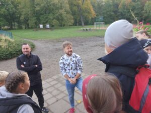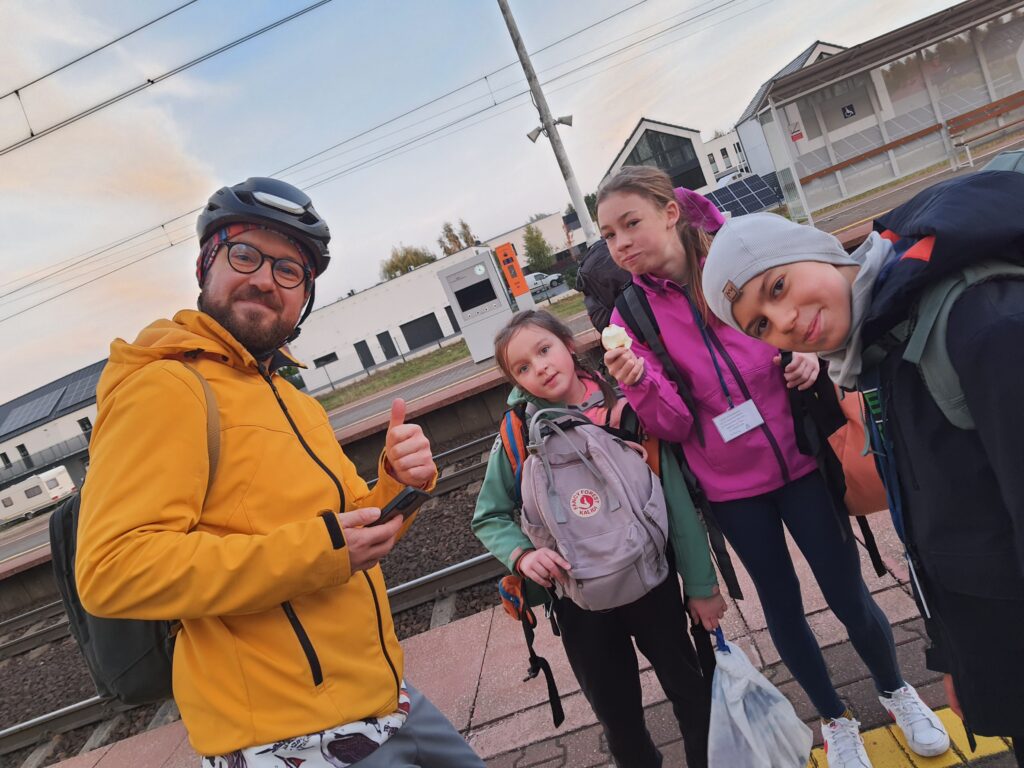 – na dworcu PKP przywitał nas wspomniany wcześniej p. Tomasz Ordza oraz p. Michał Waraczyński, nauczyciel wychowania fizycznego, który wraz ze swoją klasą 8 oraz Tomaszem Ordzą gościł miesiąc temu w naszej szkole. Było to bardzo miłe.