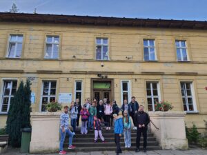 Tomek Ordza, nauczyciel chemii i biologii. Podczas naszego pobytu w Dąbrówce i Poznaniu, został laureatem konkursy Nauczyciel Wielkopolski 2024 r. Gratulacje! Jednak najważniejsze jest dla mnie to, że Tomek to niezwykle ciepły człowiek. Kiedy dziękowaliśmy mu, powiedział skromnie, że to nie On, że to rodzice i uczennice oraz uczniowie, bo bez nich nic by się nie zadziało. Fakt. Jednak doskonale wiadomo, że bez autentycznego Lidera, jakim niewątpliwie jest Tomek, nic by się nie zadziało. Był z nami niemalże cały czas, a jeśli stracił nas z oczu, gnał za nami na rowerze 🙂 Tomek, z całego serca dziękuję!