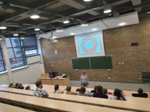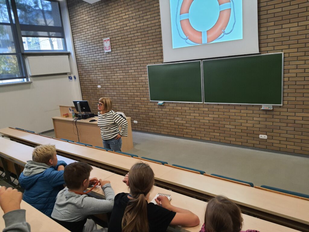 I jak na prawdziwych studentów przystało, najpierw był wykład prowadzony prof. zw. Marlenę Lembicz. Wszyscy słuchaliśmy go z zapartym tchem, zadając pytania, a było ich wiele. Prof. Marlena Lembicz opowiedziała nam o rzucaniu koła ratunkowego naszej przyrodzie. Wykład przygotowała m.in. o rzucaniu koła ratunkowego m.in. sasance alpejskiej na terenie naszego Tatrzańskiego Parku Narodowego, który z okna naszej szkoły widzimy na co dzień. Pani Profesor oczarowała nas tym co robiła na terenie TPN ze swoim zespołem badawczym by pomóc zagrożonym roślinom. Mówiła o sprawach trudnych w bardzo, ale to bardzo przystępny dla nas sposób, dzięki czemu wszystko było proste, jasne i zrozumiałe.