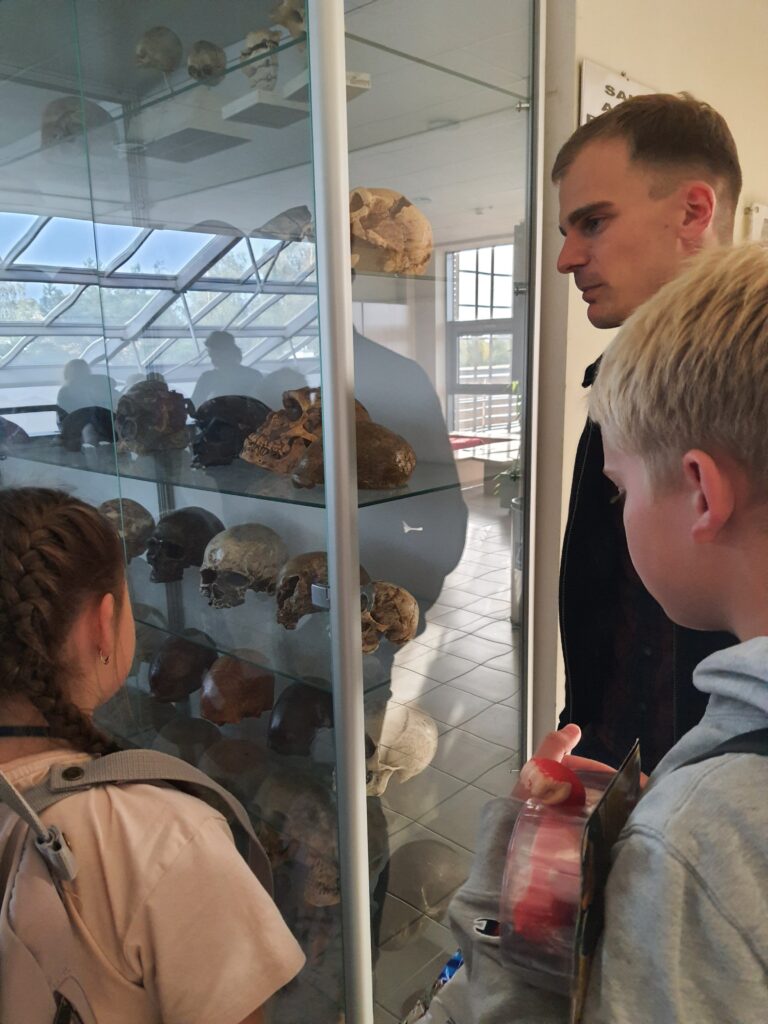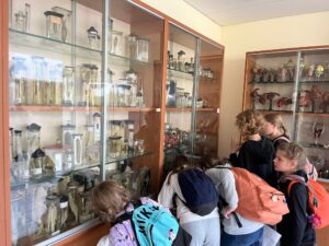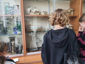 Na koniec wspólne podglądanie tego co w gablotach na korytarzach Wydziału.