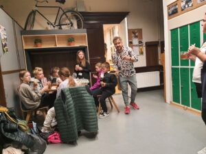 Ku naszemu zaskoczeniu, jednego z wieczorów uczennice/ uczniowie, nauczycielki/ nauczyciele przygotowali dla nas występ. Przyszli także: Pan Dyrektor Stanisław Rychlewski, nauczycielki i nauczyciele, rodzice, uczennice/ uczniowie. Było przemiło.