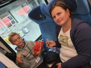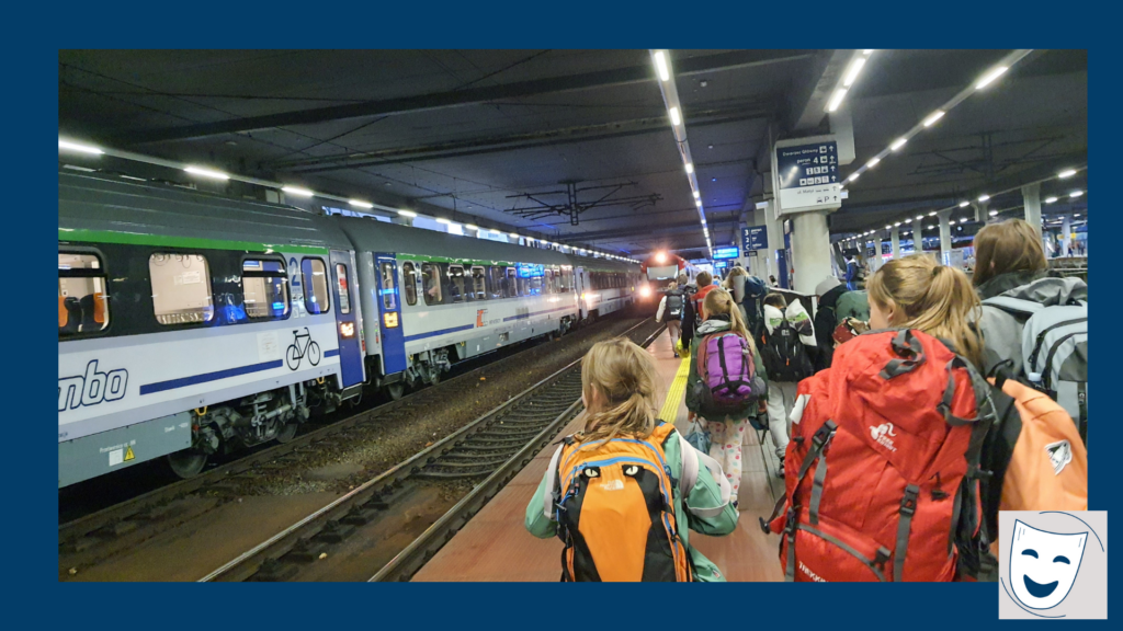 Z doświadczenia wiem, że dla moich uczennic/uczniów nie ma nic wspanialszego jak podróż pociągiem, bo to dla nich niecodzienna forma podróżowania. Jest ona także wygodna ze względu na możliwość swobodnego poruszania się po pociągu. Kolejny plus podróżowania pociągiem to przystępna cena, o wiele niższa niż innym środkiem transportu. Tak więc z trzema przesiadkami: Poronin-Kraków, Kraków-Poznań Główny, Poznań Główny- Palędzie dojechaliśmy do miejsca docelowego. Na miejsce noclegowe doszliśmy pieszo.