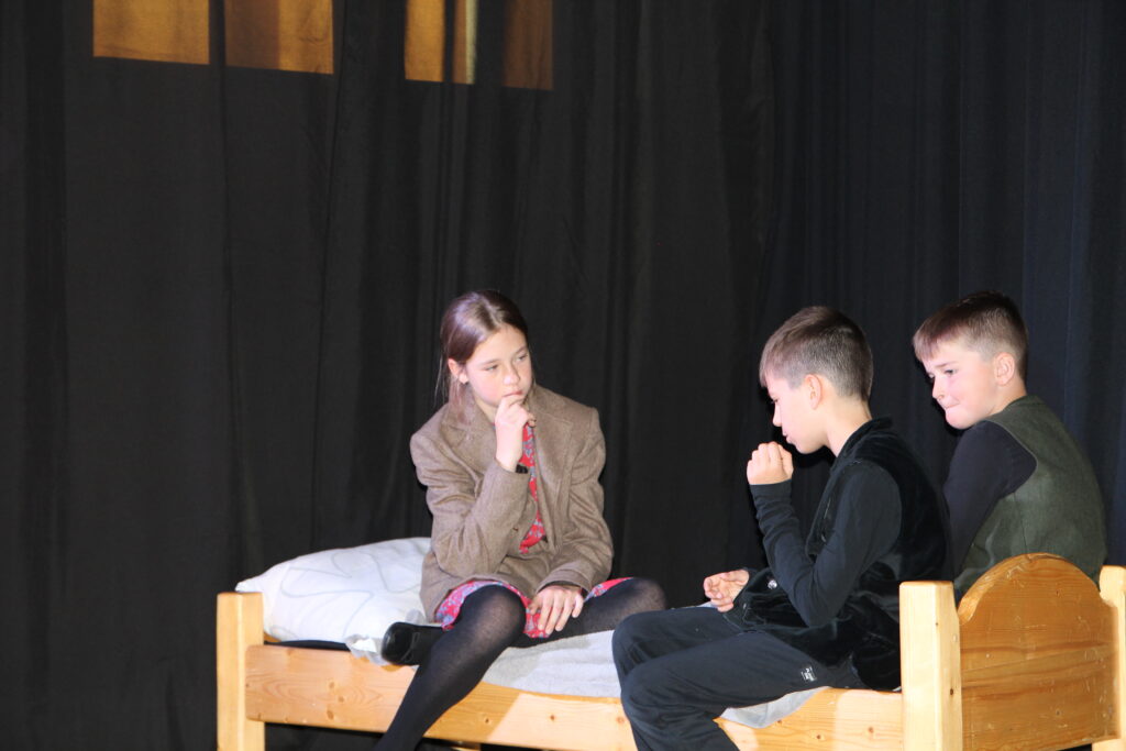 Jedno z zadań aktorskich polegało na ty, że dzieci musiały się ze sobą przekomarzać i kłócić . By była przy tym widoczna reżyseria miały za zadanie robić to w taki sposób, by wszystkie ich głosy się na siebie nie nachodziły, „ nie zlewały się ze sobą” tworząc jeden głos. By każdy mówił (wykrzykiwał) to co ma do powiedzenia na innej częstotliwości, pamiętając, że kłótnia z biegiem czasu musi nabierać na sile. Nie może być tak, że jej szczytowy moment będzie już na samym początku. Wystarczy obserwować rzeczywistość i to jak takie kłótnie wyglądają (cicho do coraz głośniej), choć do nich oczywiście nie zachęcam.